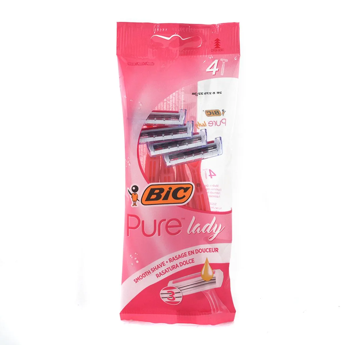 Aparat de ras dispozabil pentru femei BIC Pure3 Pink cu 3 lame, 4 bucati