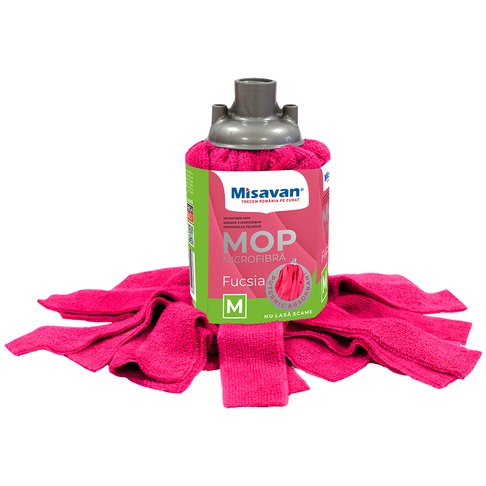 Rezerva mop Misavan, microfibra, marime M, Fucsia este solutia ideala pentru curatarea zilnica a tuturor tipurilor de pardoseli – de la gresie si la parchet, pana la suprafete din PVC sau linoleum. Curata pardoseala fara sa lase urme, scame sau exces de apa.